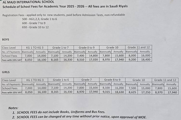 Schedule of Fees